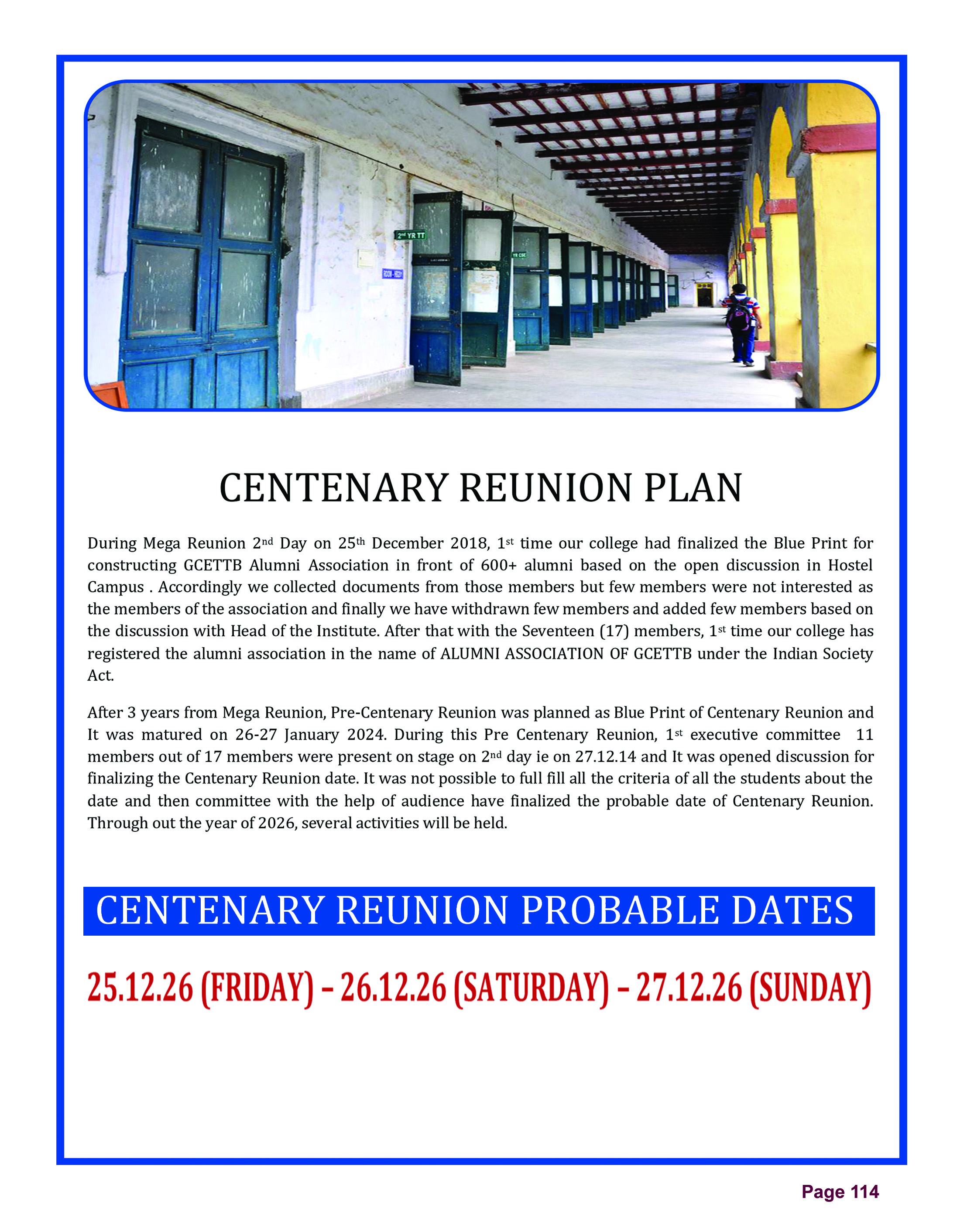 After a long time, students are organising the Mega Reunion 2018 (REMINISCENCE-2K18) on 24-25 December 2018 at Govt College of Engineering & Textile Technology – Berhampore (Formerly known as CTTB). Students have already communicated seniors from 1956 passed-out batch to 2018 passed-out batch. There are four departments running – B.Tech in Textile Technology, B.Tech in Computer Science & Engg (Since 2001), B.Tech in Mechanical Engineering (Since 2010) & B.Tech in Electrical Engineering (Since 2010). Maximum of the seniors from different department and batches are already communicated. Our students have communicated via mail, phone for invitation. Total Ten(10) number of students team has already visited Kolkata, Mumbai, Bangalore, Hyderabad, Ahmedabad, Silvasa, Anjar, Vapi, Surat, Punjab, Delhi, Noida etc. They have conducted alumni meet where maximum seniors attended and students requested and invited them to join the Mega Event & also requested them to arrange Advertisement & Contribution. Without help from seniors, this mega event cannot be successful. During the two day programme, Day activities will be held in college premises & Evening activities will be held in hostel premises. Both days cultural programme will be conducted by our students where maximum seniors are interested to perform their talent in stage. After physical visit, we have finalised & published 30+ hotels details to our batch representatives by mail. For better communication, we have made a Whatsap group – GCETTB REUNION 2018 where from each batch & department, one or two seniors are there. They can get every update regarding the reunion discussion through mail and group and expecting they are informing you.